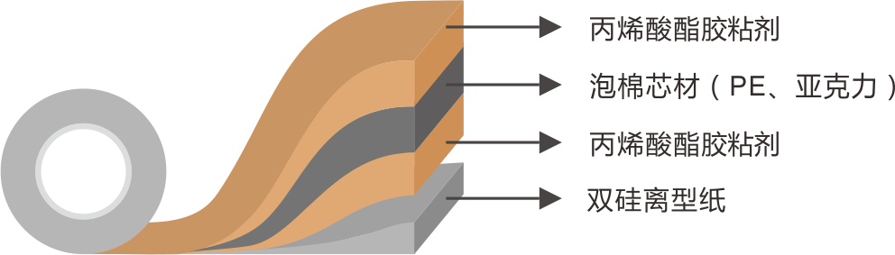 ? 采用優(yōu)質(zhì)的進(jìn)口泡棉,涂布高粘性膠粘劑制成的泡棉雙面膠帶。